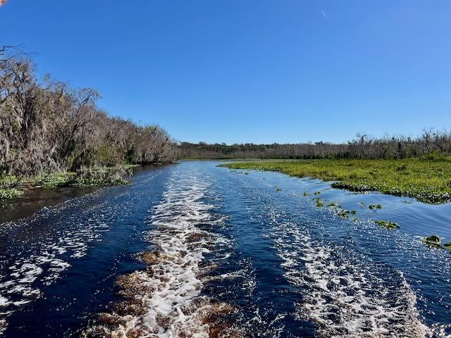 We saw many species of birds such as great blue herons, little blue herons, anhingas, and limpkins with their monkey-like screeches. We saw trees filled with ibis, egrets, ducks, and the occasional hawk. And we even saw a bald eagle flying overhead.