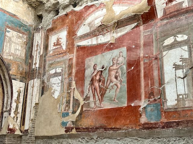 Herculaneum is a well-preserved site with houses, shops, and baths, and numerous artifacts including wooden elements, mosaics, frescoes, giving us a window of their lives long ago.