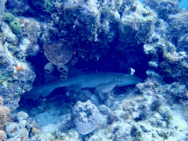 On the larger side, we saw a couple of playful turtles, some large stingrays, a sleeping nurse shark, and lots of large groupers. Not the Goliath but large Black and Nassau groupers.