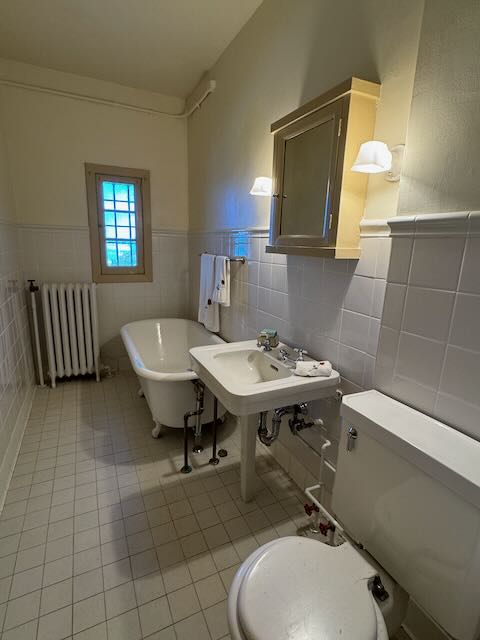 It would be easy to include an in-room coffee machine or kettle and a mini fridge/minibar. We’ve grown accustomed to having these in the room, but perhaps they increase the risk of fire or ruining the furniture. That said, we have stayed in other renovated castles where the inside was completely modernized and new. From USB plugs to Nespresso machines to dimming lights and automatic shades.
