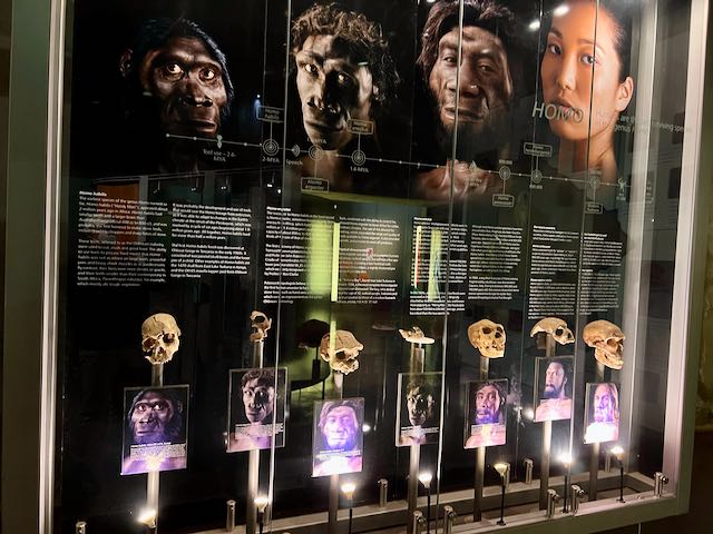 The museum exhibits show some of the discoveries of our early ancestors. The displays of skulls and depictions of what our early ancestors may have looked like was interesting. There were also many exhibits that really made you think.