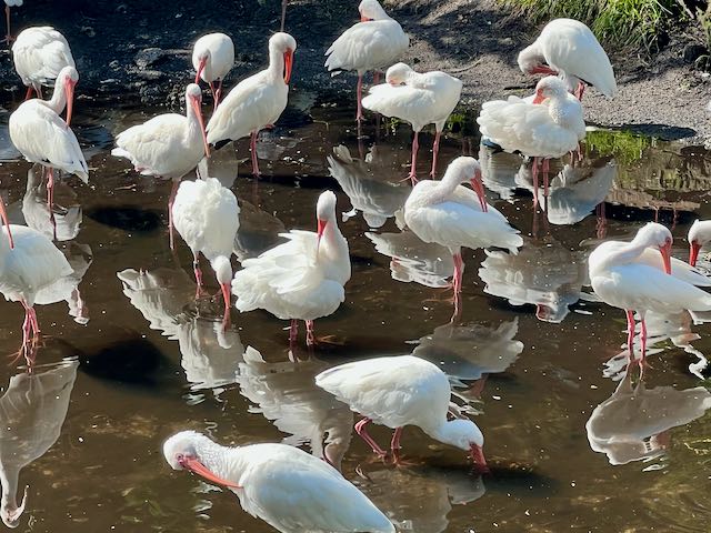 There is a Butterfly and Hummingbird garden which was unfortunately under renovations when we visited. Dozens of peacocks could be seen roaming the grounds along with ibises, pelicans, and many other native species of birds. They seem to have it pretty good there.