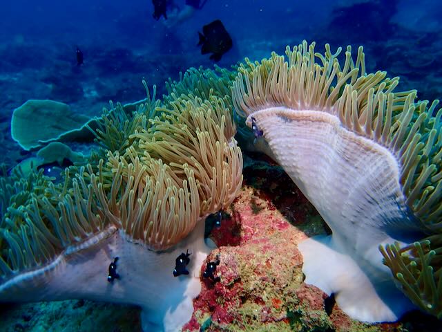 Other notable sightings were a huge giant moray eel, collared butterflyfish, giant clams, white jawfish, and a juvenile terra batfish.