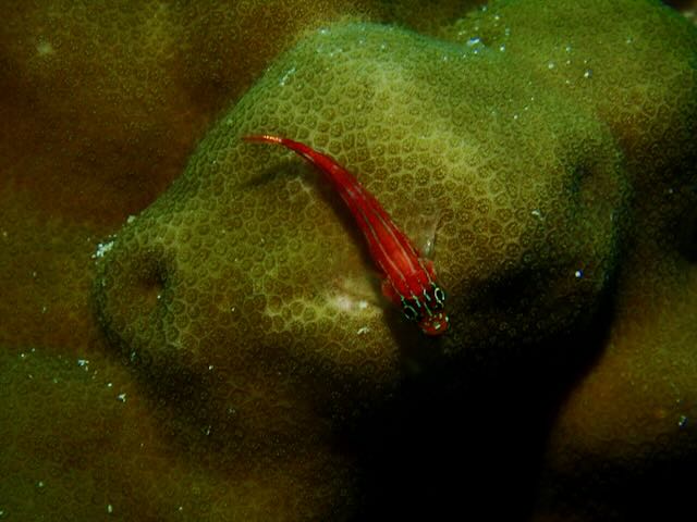 It was a gray day for diving and the cloudy rainy day made for good but not great visibility. I had also opted to bring just a light instead of my strobe in an effort to save weight in the luggage. In retrospect, the strobe would have done a much better job as many of the shy creatures hid from the approaching light. The brightness of the strobe was also missed with the dark overcast sky.