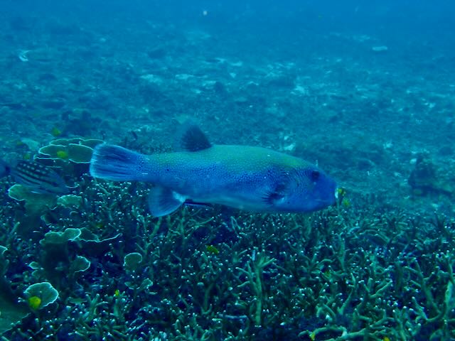 We also saw huge puffers here and a large patch with 16 crown-of-thorns starfish, all in one place!