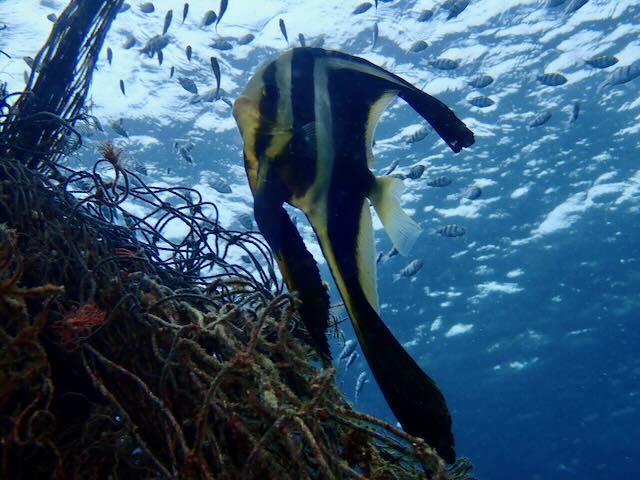 A highlight of this dive was an enormous school of sardines that at one point made a circle around us and were visible in all directions. Amazingly they seemed to go on forever. We’ve seen bait balls before at the Blue Heron Bridge and in Grand Cayman but this was the largest bait ball we had ever seen. Incredible!