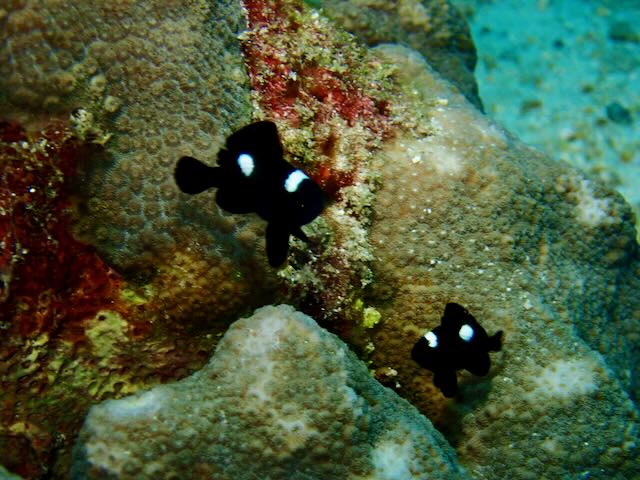 Other notable sightings included many giant clams, 3 terra batfish, many small domino damsels, and various anemonefish. We even saw a large tasseled scorpionfish and many bicolored blennies with bright orange tails.