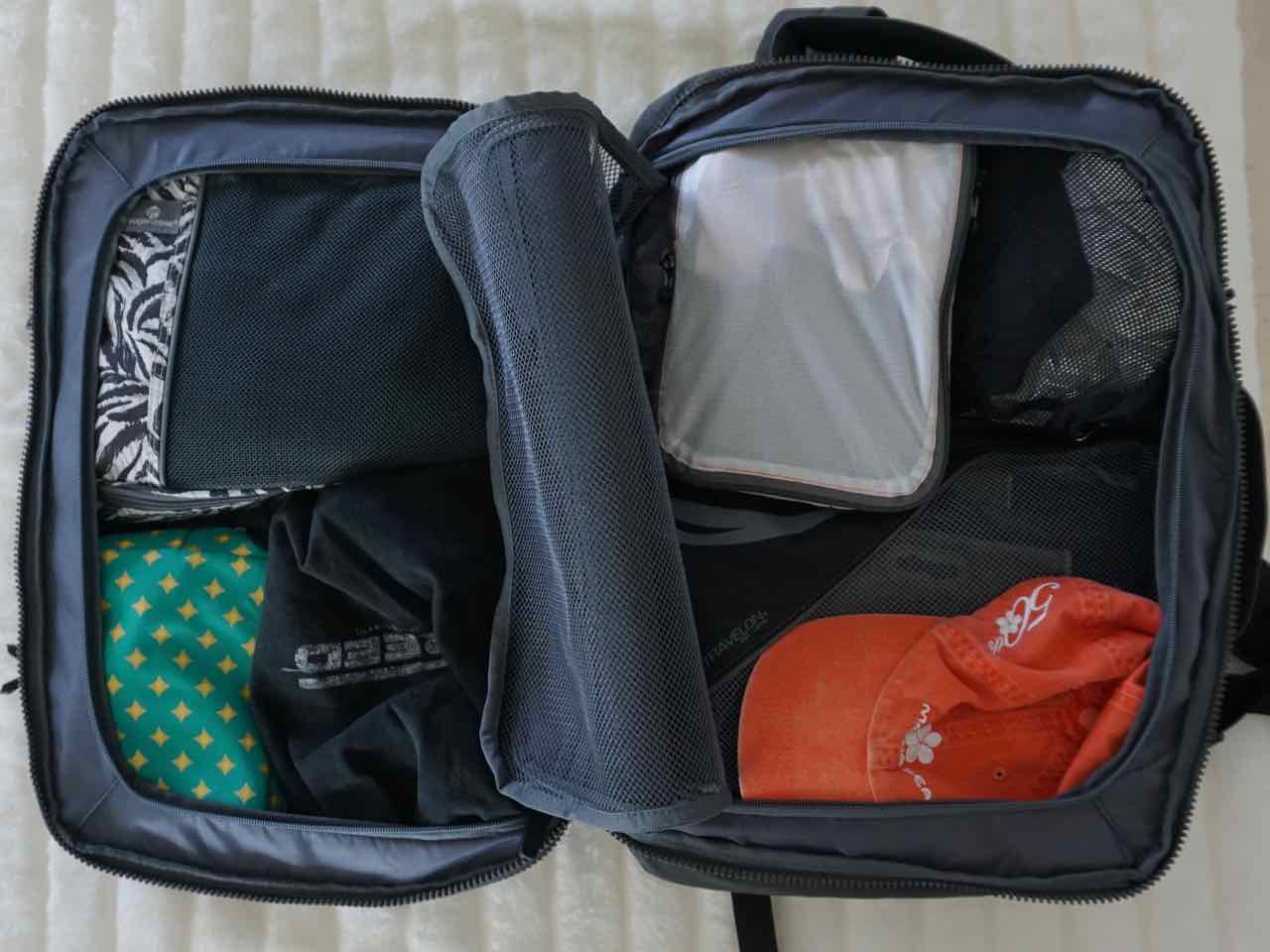First off, once you decide you are ready to give up the wheels, you can save a lot of room and weight. For sure, rolling a bag is easier but ultimately if you can also carry it as a backpack or with a handle for the short trip through the airport you gain a lot of space. This was a compromise we were ready to make.