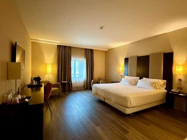 The hotel itself is also a historic building, originally built as a palace for Spain’s Prime Minister in the 18th and 19th century. It was clean and comfortable and had indoor parking under the hotel. We had a view from the room that looked out at the palace grounds which was nice. It was literally a 2-minute walk to the palace so definitely the ideal spot to stay if overnighting.