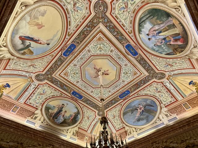 The lavishly decorated rooms are on par with what we have seen at some of our favorite palaces and castles. While definitely smaller when compared to Madrid’s Royal Palace or others, the visit took us about an hour and was very enjoyable. The restorations are on a scale you’d expect in a royal palace making the visit delightful.