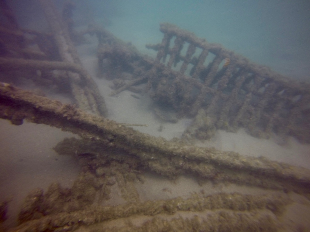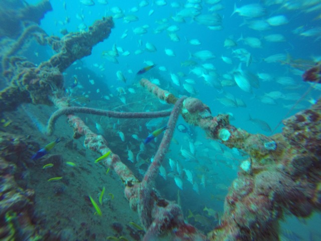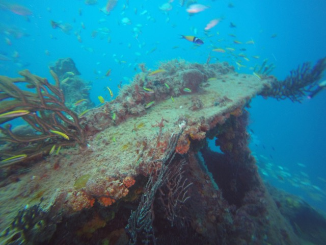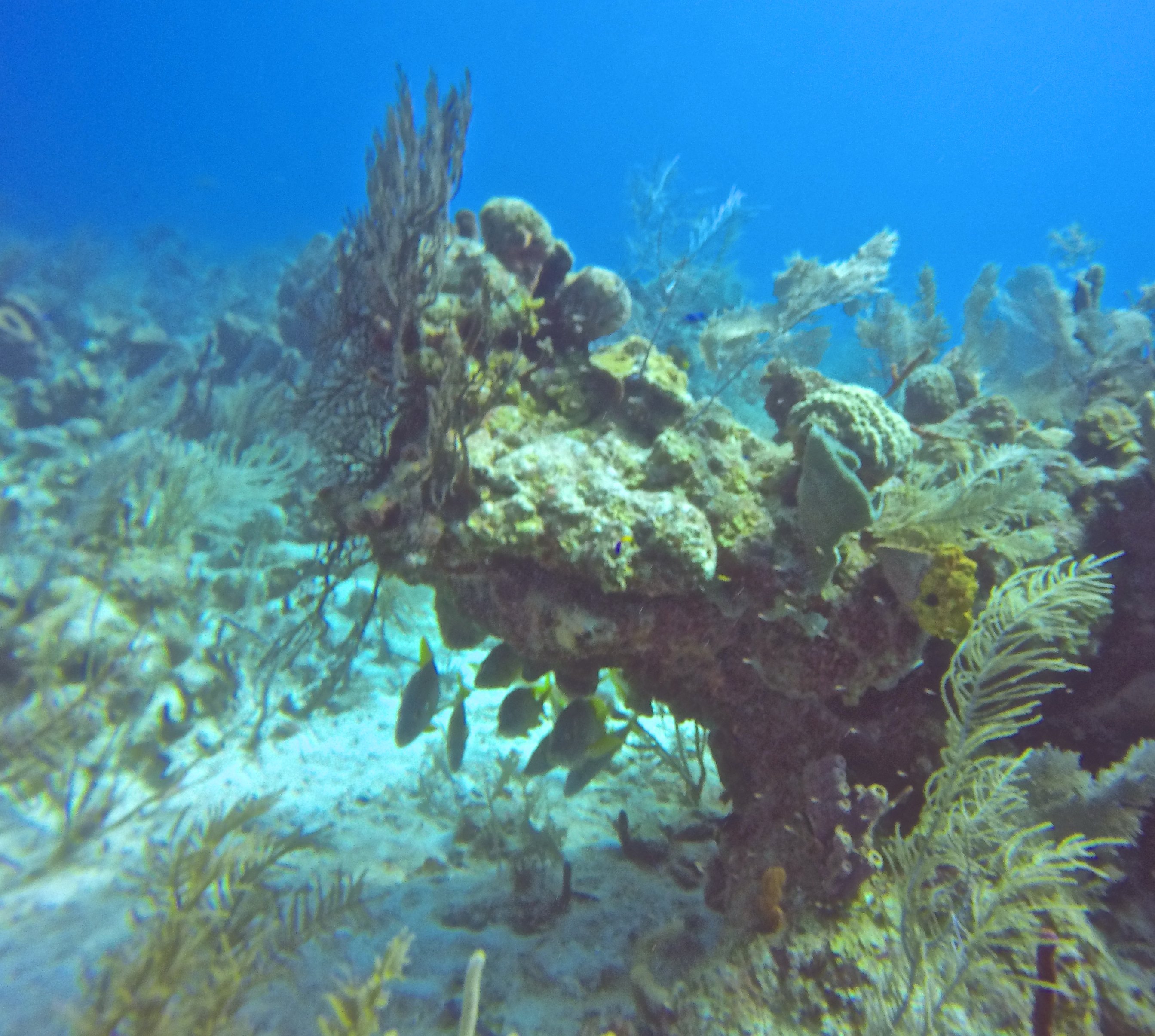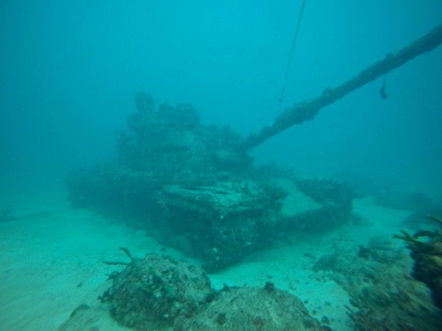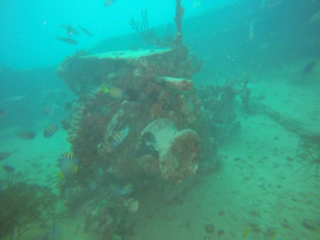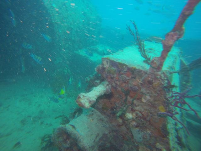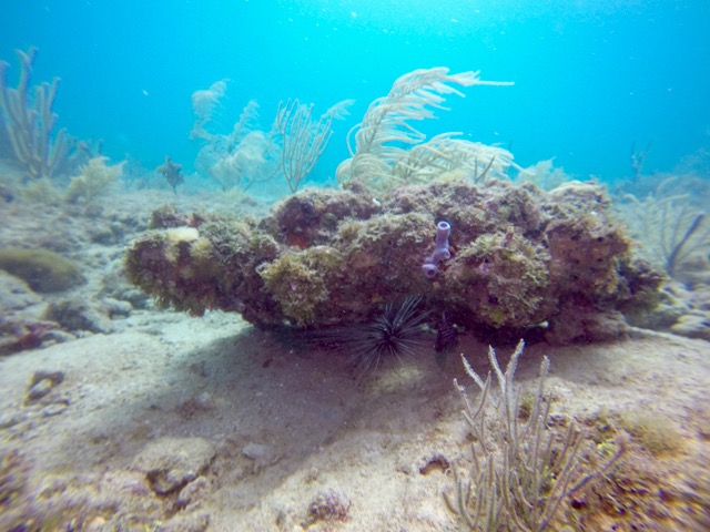 We dove right off the beach in the heart of San Juan, Puerto Rico. This was our first beach dive and the quiet cove was ideal for this type of dive. It’s also great for swimming and snorkeling. Due to bad weather, visibly was pretty limited (maybe 15 feet) and not ideal for pictures but the old bridge was nice to see.