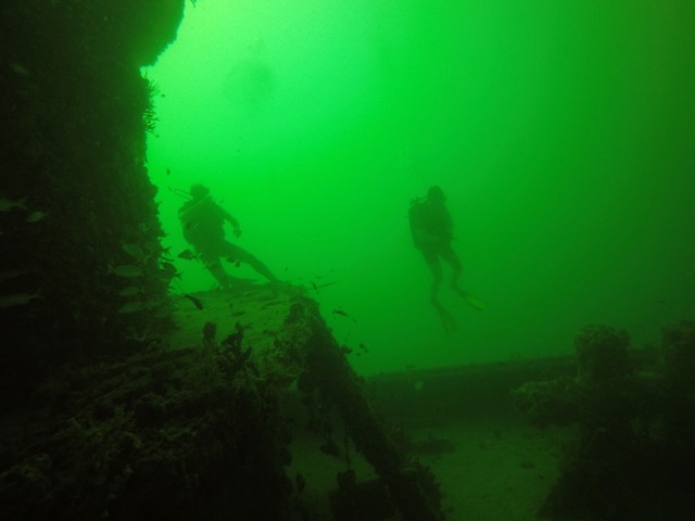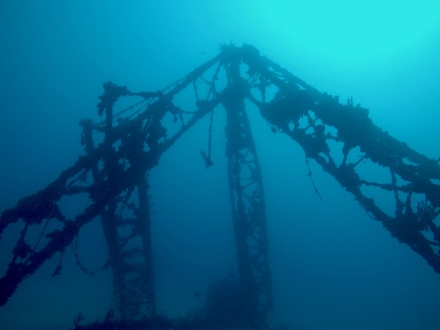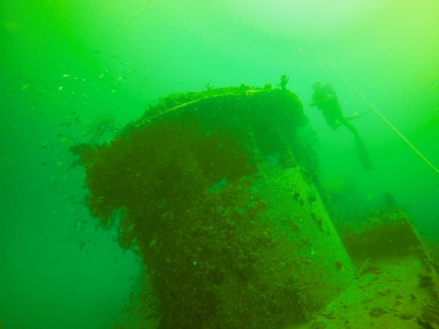 On another day the dive conditions were excellent and we dove on the C-One wreck. This 120- foot tugboat was purposely sunk to create an artificial reef. It’s a haven for sea life and has multiple entry points—there is always something to see and the tilted angle gives it an interesting look.