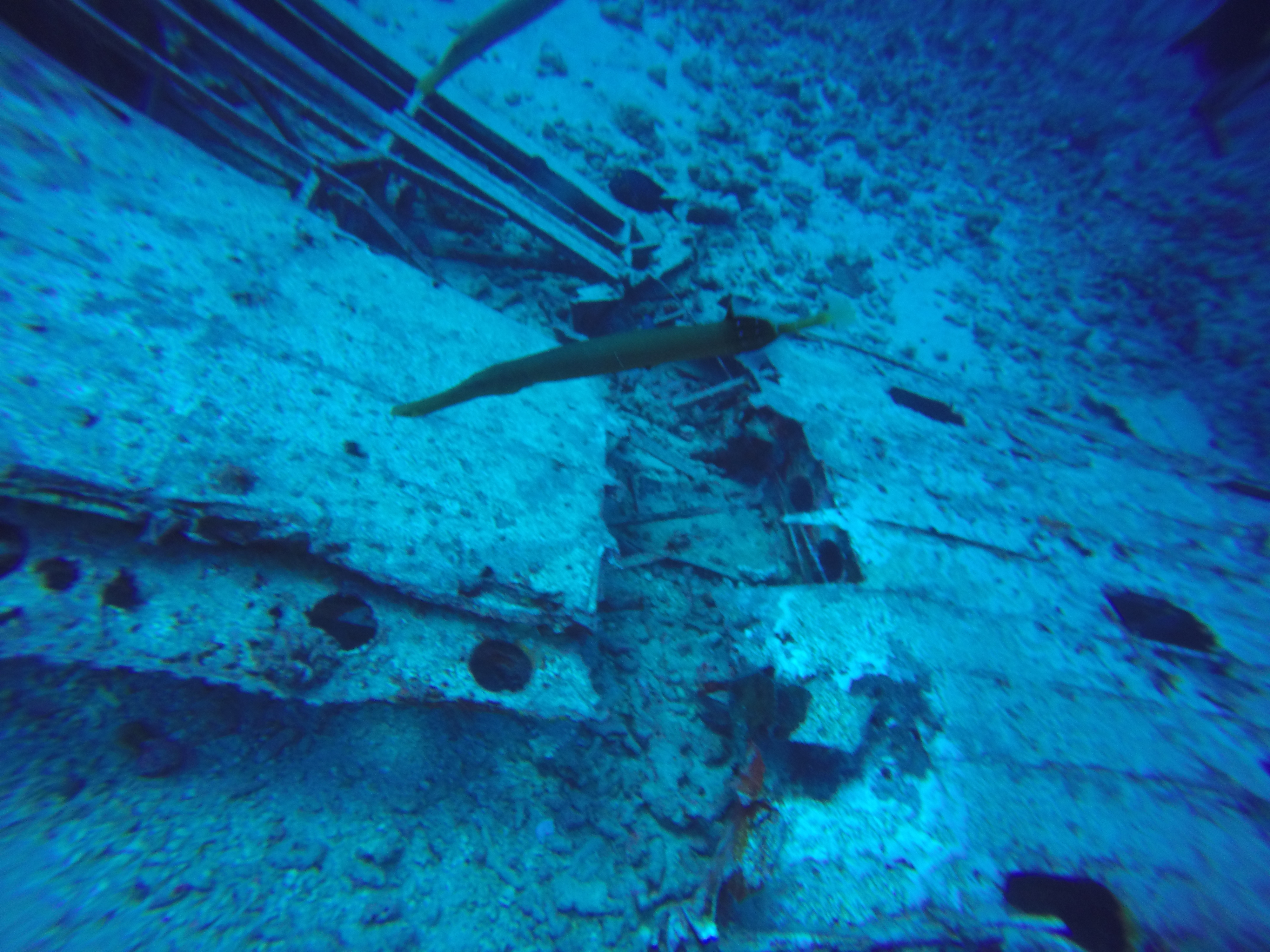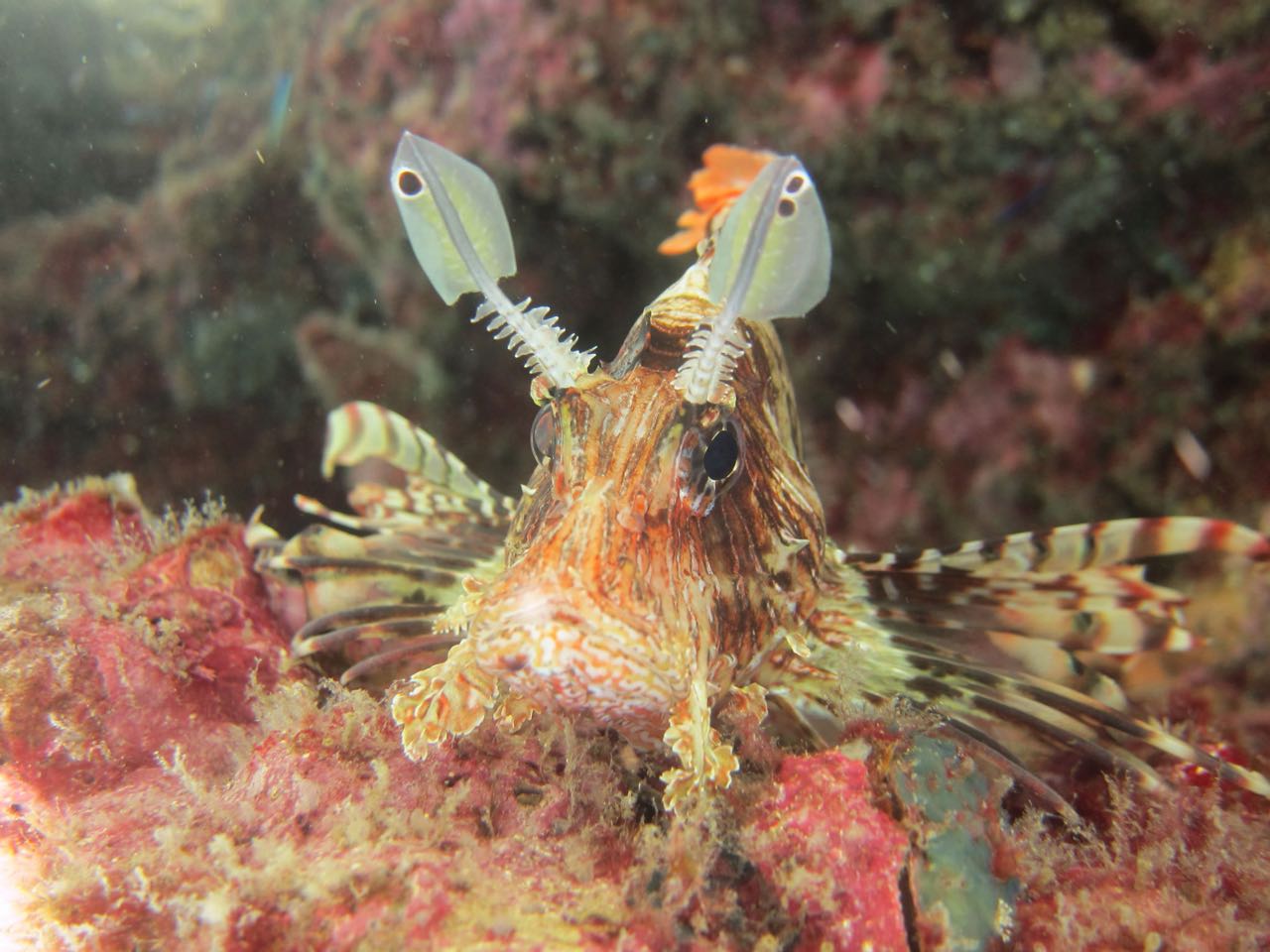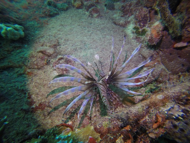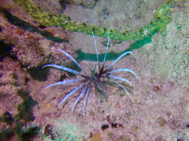 Sometimes the boating conditions aren’t ideal and even if the dive trip isn’t cancelled the dive site might get changed at the last minutes. This was the case that time and we couldn’t dive the C-One wreck—it was too risky so we dove on the reef closer to shore. Many small creatures were hiding in the crevices around the pipeline.