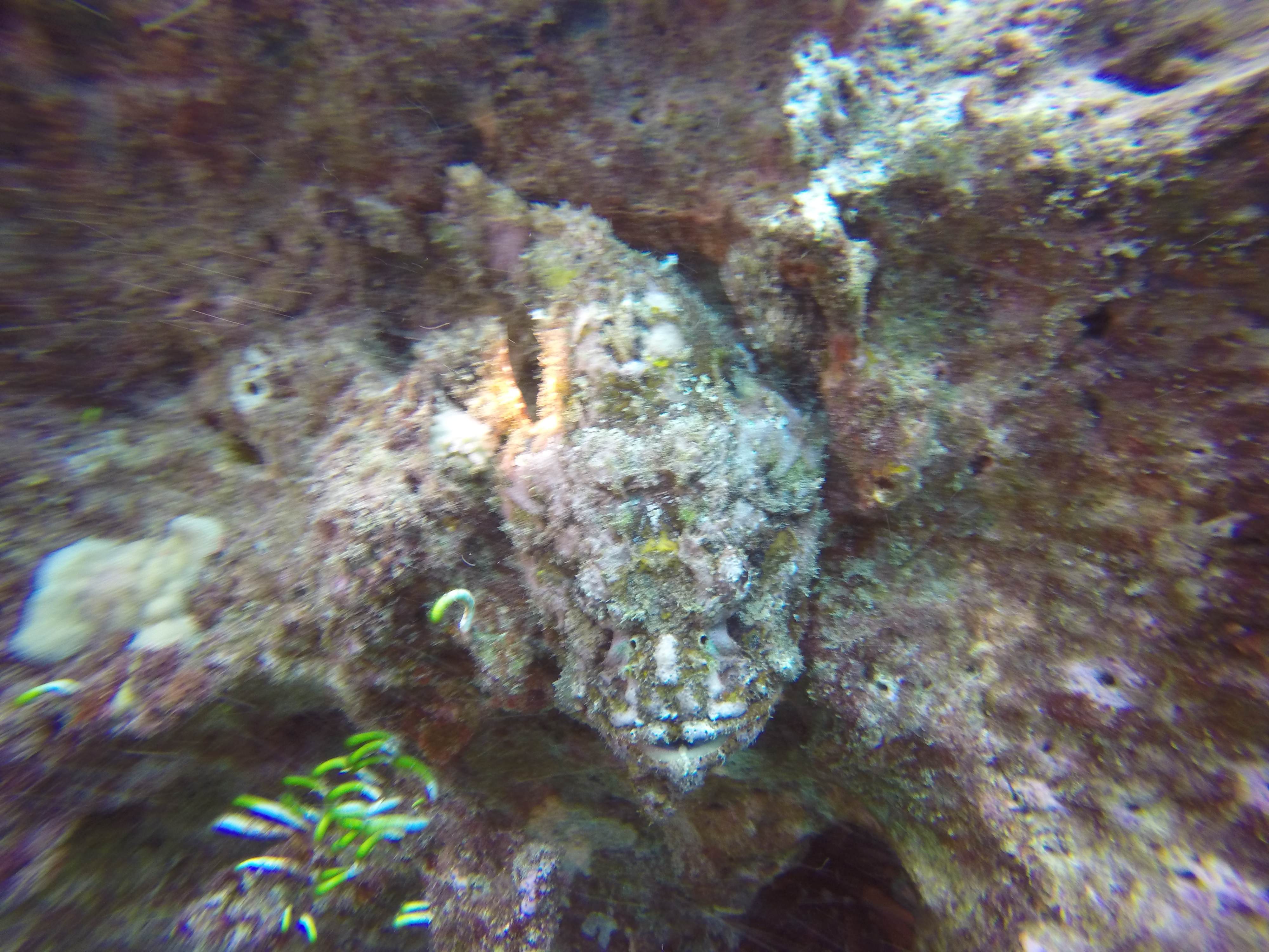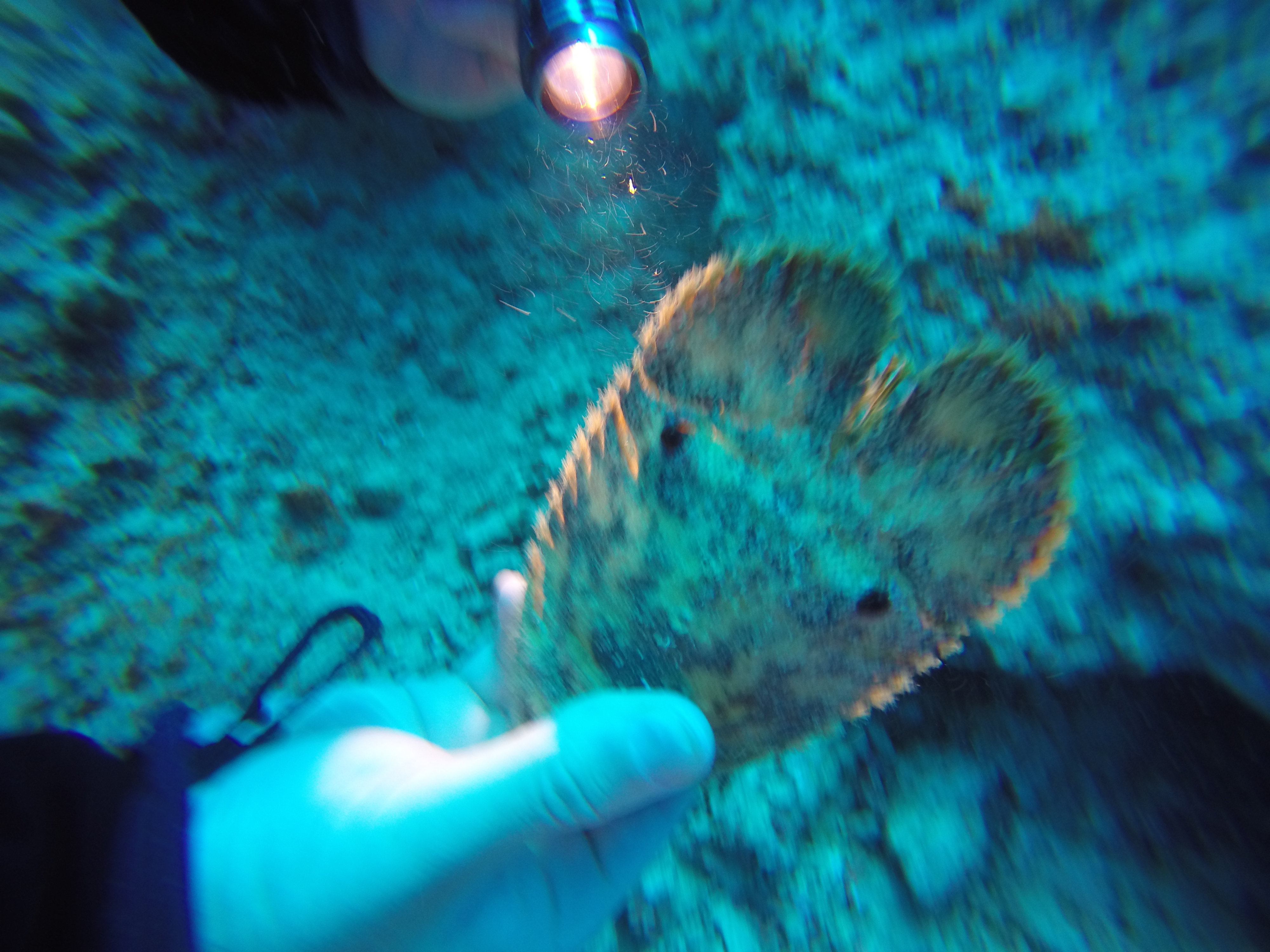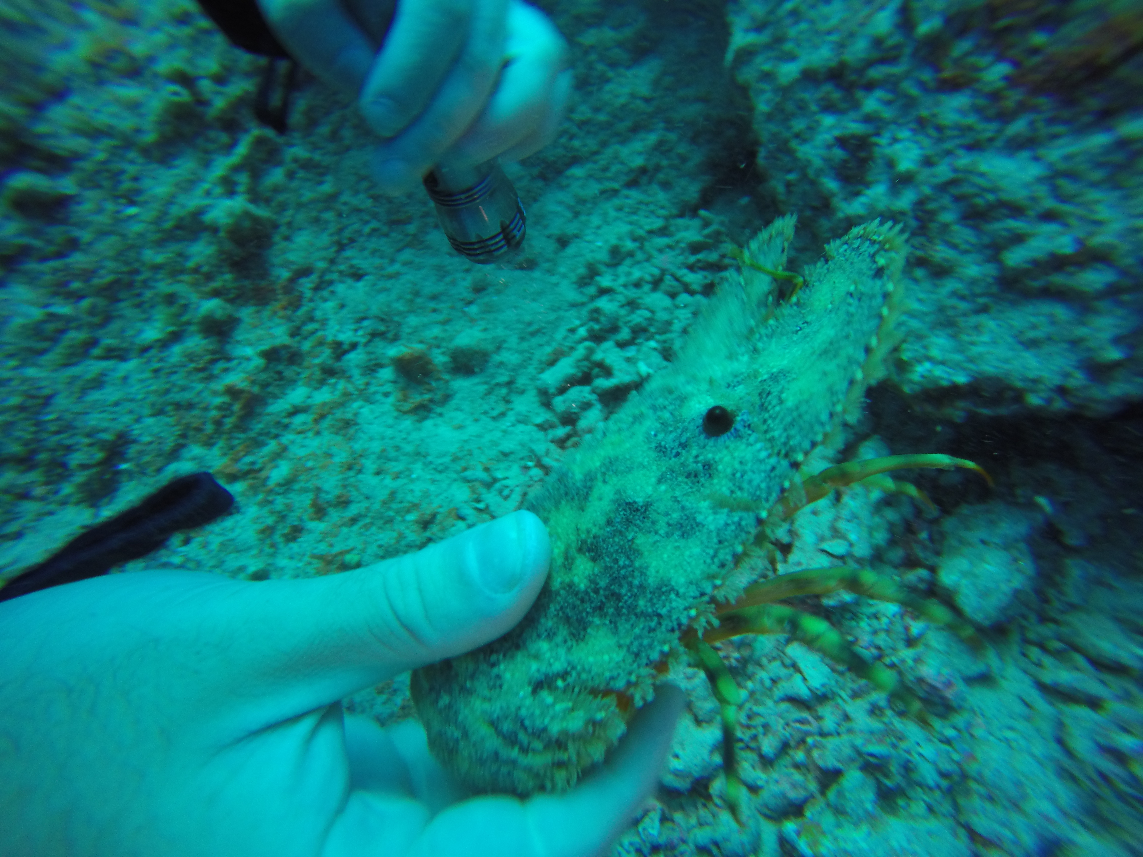 Sometimes the boating conditions aren’t ideal and even if the dive trip isn’t cancelled the dive site might get changed at the last minutes. This was the case that time and we couldn’t dive the C-One wreck—it was too risky so we dove on the reef closer to shore. Many small creatures were hiding in the crevices around the pipeline.