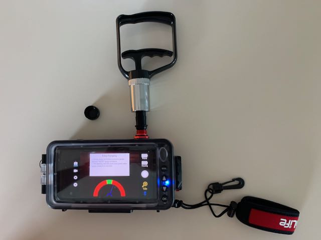 Once inside, you lock the case down with a lever that seals against a lubed gasket. There is a small suction pump that you use with the app which shows you when the inside of the case is at the right pressure.
