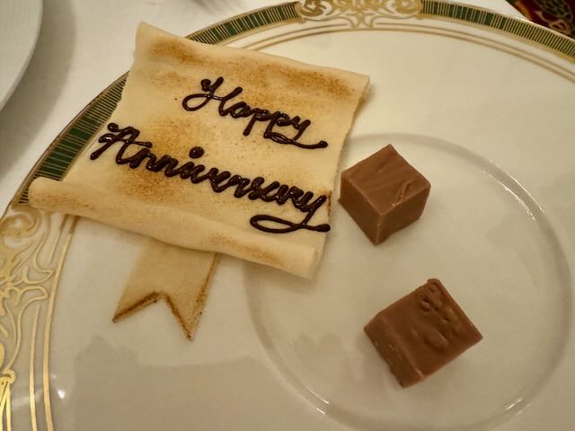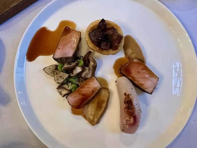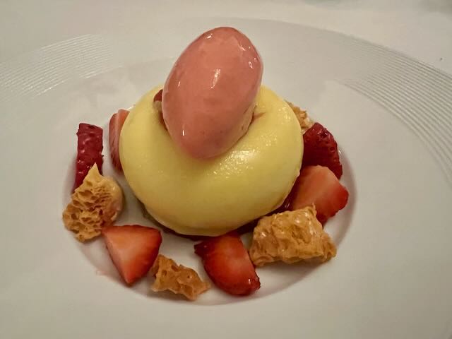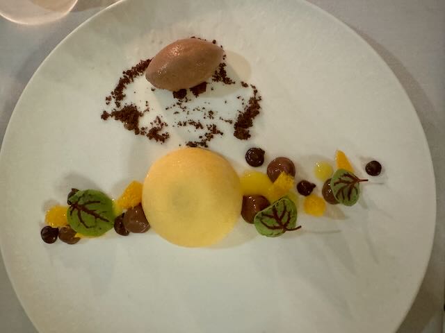 Dinner was spectacular. Every dish was a work of art and made to order. You could picture a group of chefs fussing over every plate with a pair of tweezers placing each berry and each miniature leaf of fresh spice into the perfect position. Success! Everything worked fabulously, all was at the perfect temperature, from the amuse-bouche between servings to the homemade chocolates served with coffee that came out after this two-hour plus dinner experience.