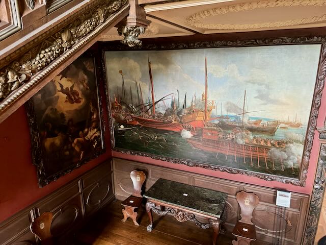 See the original recliner chairs in the bedroom and the long row of leather fire buckets. Notice also the X-rays of paintings revealing other paintings suspected of being tied to Charles II that were painted over so as not to implicate the owners that may have been paid a visit by the guards.