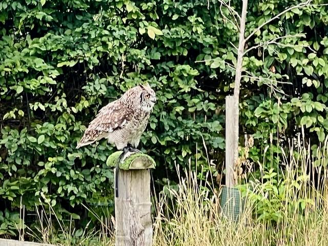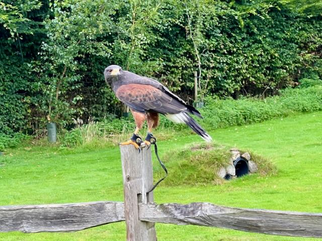 Despite a bit of drizzle on the day of our visit, the falconry show went on and even the owl (whose wings are not waterproof we came to learn) did its best to perform. The show was well orchestrated with handlers walking through the crowds and the birds stopping at various perches amongst the cheering and smiling crowd.