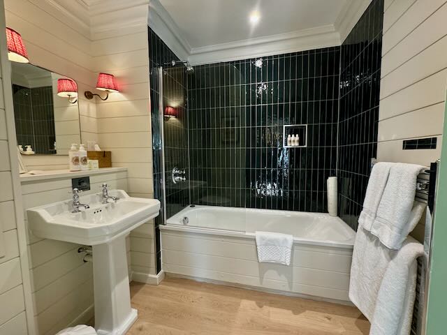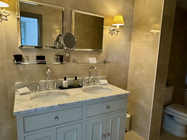 While the castle rooms don’t have air-conditioning, the thick stone walls and cool English nights made it quite comfortable and we didn’t miss it at all. The inside is of course fully modernized with a modern bath, separate rain shower and a plush and comfy king size bed. Amenities included a nice Nespresso machine, a kettle and freshly baked cookies every day. Easy to get used to this!