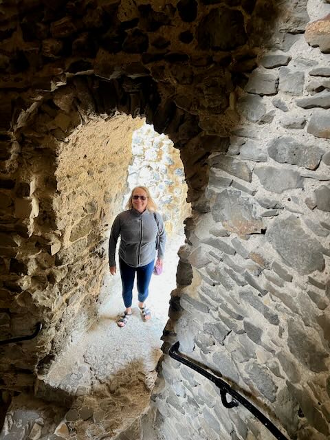 More of a castle ruin really, it is small in comparison to some of the other ruins we had seen and doesn’t have any of the historic furnishings or artwork that the restored castles do. That said, the castle walls are structurally intact enough that you can climb up two of the impressive towers for vantage points from which to admire the open site’s interior court and surrounding countryside.