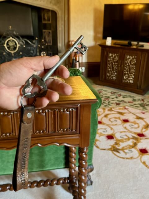 Checking in and climbing the circular stone staircase to our suite was exciting. The key itself was monstrous and the lock was like one you’d see at a museum, a cast iron mechanism measuring at least a 12 by 9 inch and over an inch thick! Very fitting for the solid oak castle door.