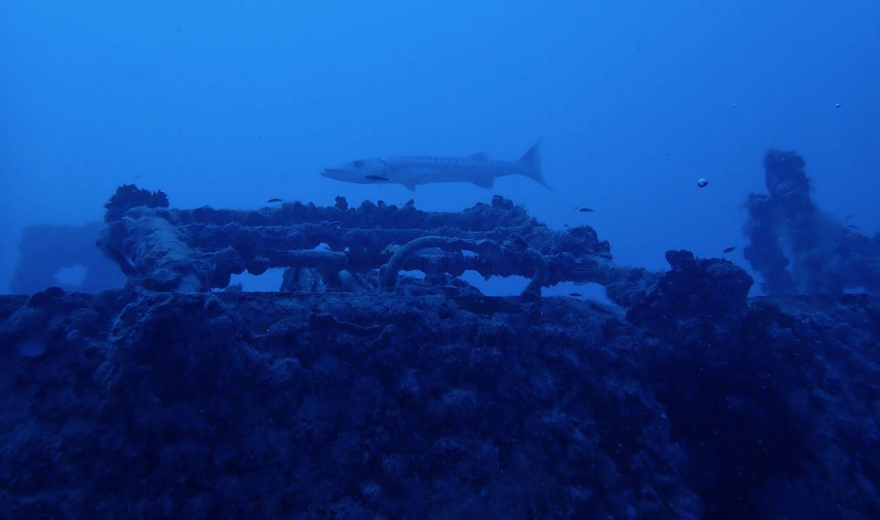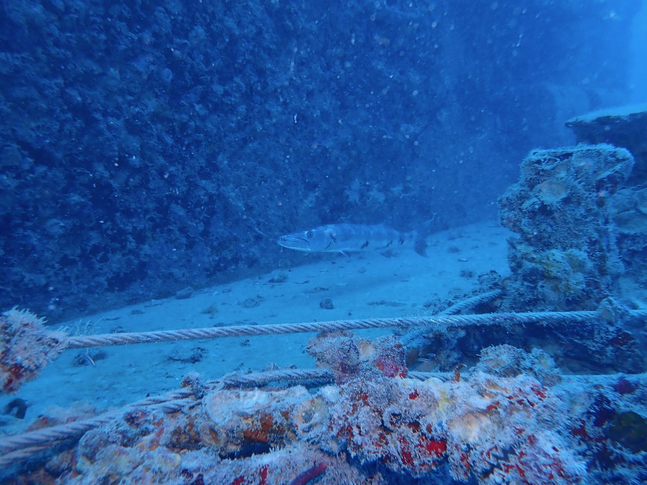 Spiegel Grove Gallery Visibility was approximately 35-40 feet with numerous particles floating in the water. The use of light only hindered the quality of the photos so none was used which explains the lack of colors at that depth. Spiegel Grove Great barracuda Great barracuda on Spiegel Grove Air bubbles from divers below Great barracuda Goliath grouper next to the Spiegel Grove Spiegle Grove Wreck
