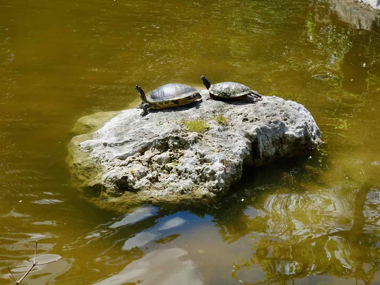 We particularly enjoyed the bridges and picked up some fish food to throw into the ponds, for both the fish and the bale of turtles. We even saw a baby alligator that showed some interest. Hmm, where’s mama?
